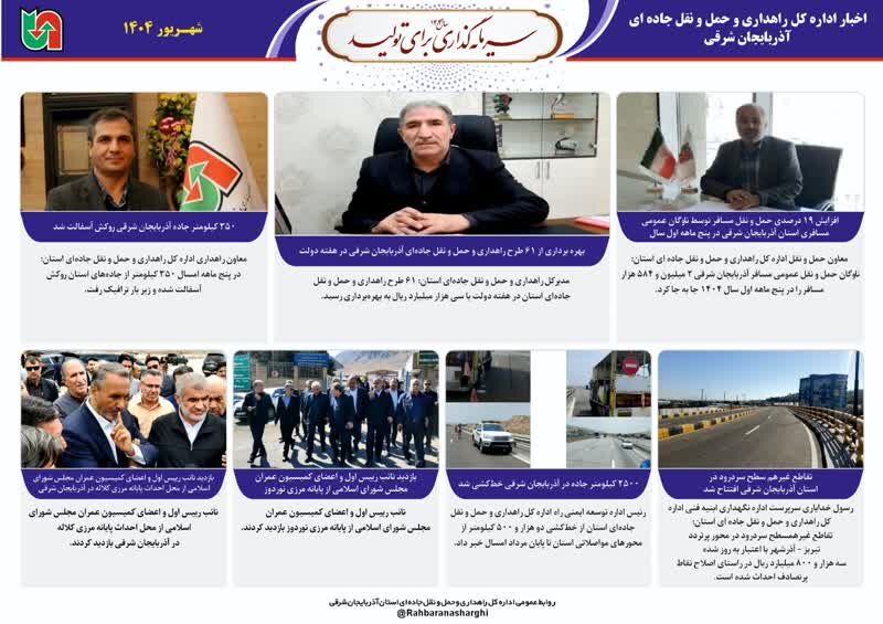 شنبه ۵ مهر ۱۴۰۴ - ۰۹:۴۰ شناسهٔ خبر: 204861 - سرویس استانها نسخه قابل چاپ ببینید| بولتن خبری اداره کل راهداری وحمل ونقل جاده ای آذربایجان شرقی در شهریور ماه ۱۴۰۴