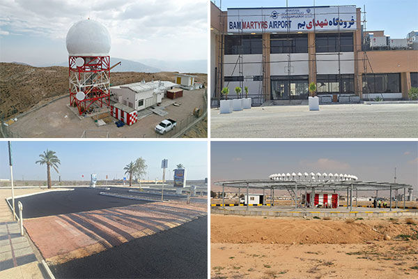 یکی از پروژههای شاخص فرودگاهی در آیین افتتاحیه، تکمیل عملیات توسعه و بهسازی باند فرودگاه شهدای بم در استان کرمان است که پس از سالها انتظار، بار دیگر این فرودگاه آماده انجام پروازهای مسافری شده است.