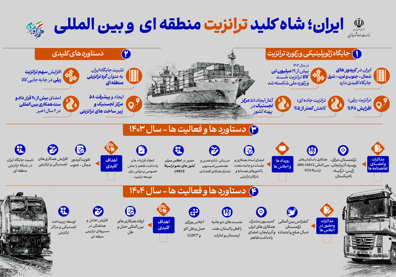اطلاع نگاشت| ایران شاه کلید ترانزیت منطقه‌ای و بین‌المللی