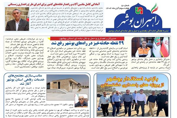 ببینید| نشریه الکترونیک اداره کل راهداری و حمل و نقل جاده‎ای استان بوشهر «هفته سوم آبان ماه ۱۴۰۴»