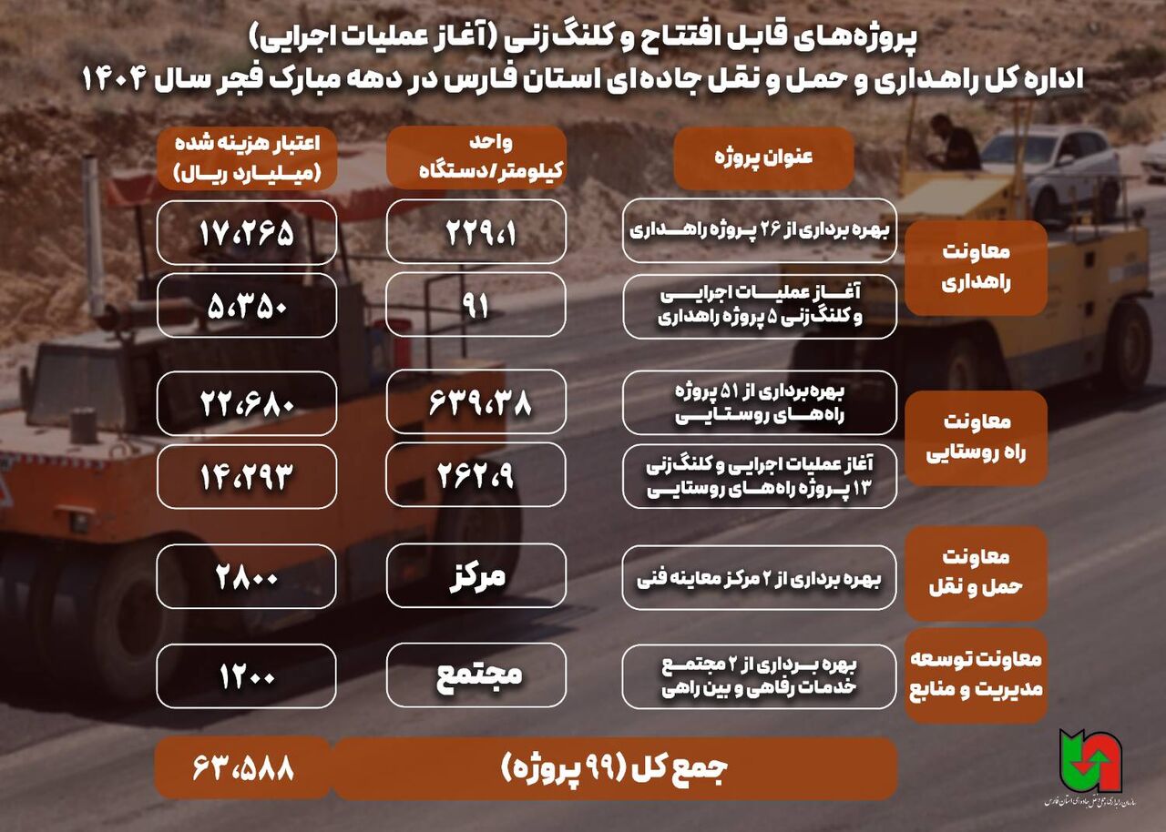 اطلاع‌نگاشت| پروژه‌های افتتاحی دهه فجر راهداری و حمل و نقل جاده ای فارس