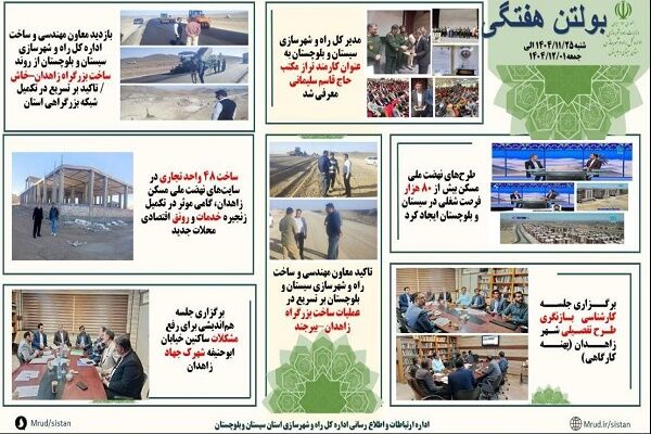 ببینید| بولتن هفتگی اداره کل راه و شهرسازی سیستان و بلوچستان- هفته اول اسفندماه ۱۴۰۴(۲)