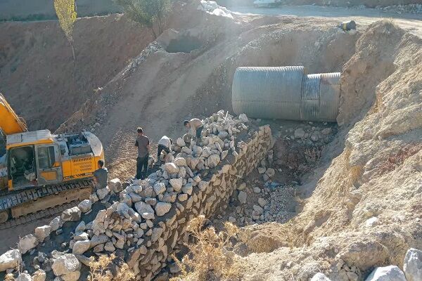 ببینید|ساخت پروژه دیوار ساحلی محور روستایی نردین _تلوبین در سمنان