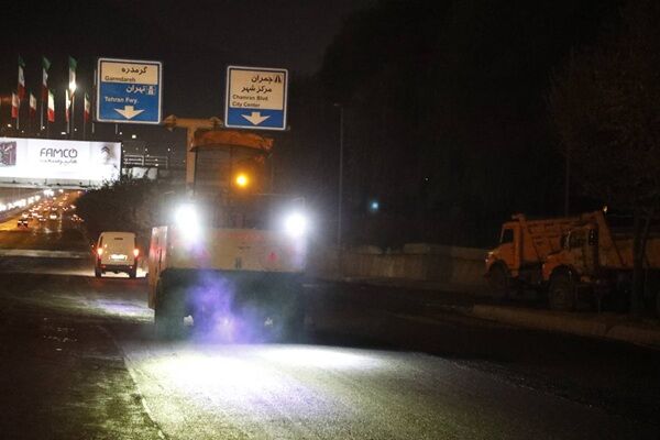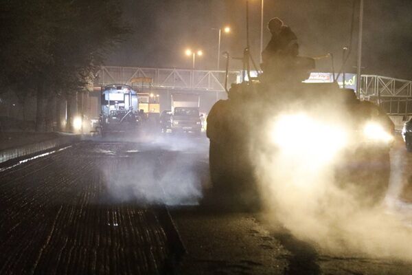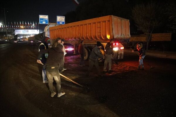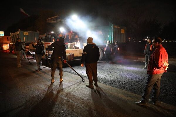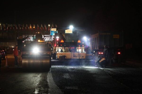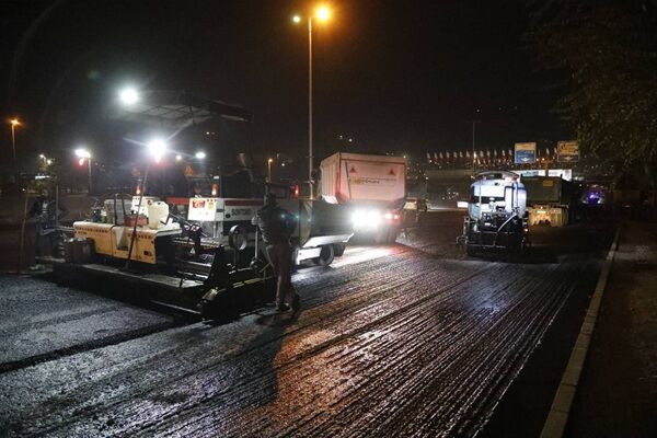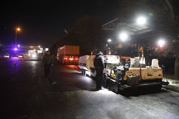 ببینید|اجرای عملیات شبانه روکش آسفالت آزادراه تهران کرج محدوده پل فردیس