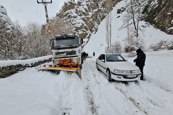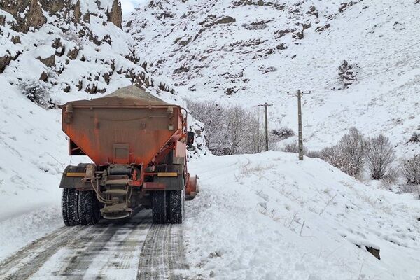 ببینید|عملیات برف روبی و نمک پاشی محور های روستایی جاده کرج- کندوان حوزه راهداری گچسر