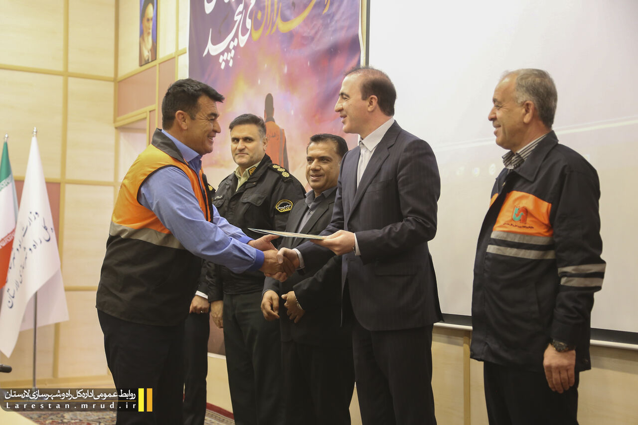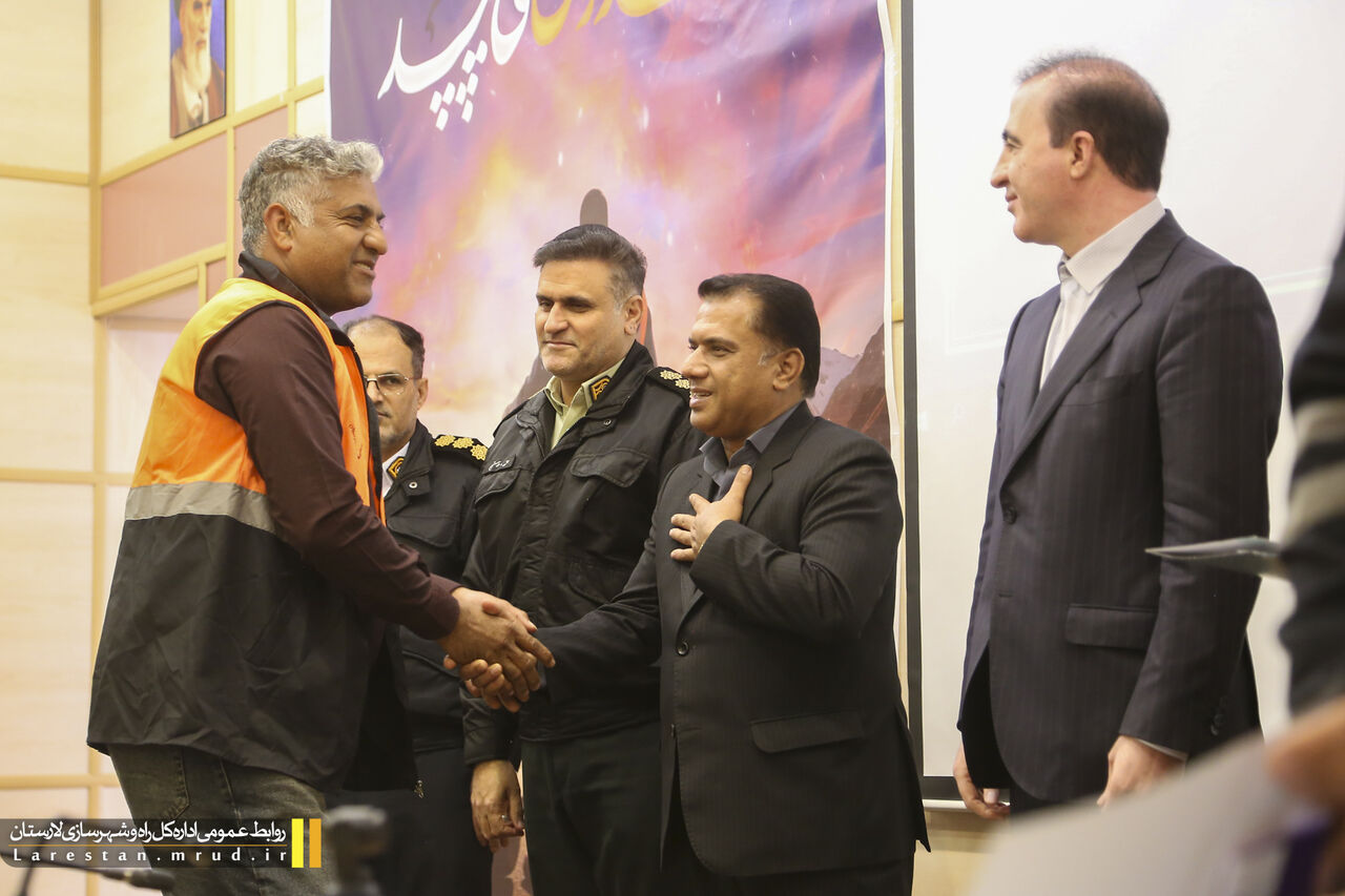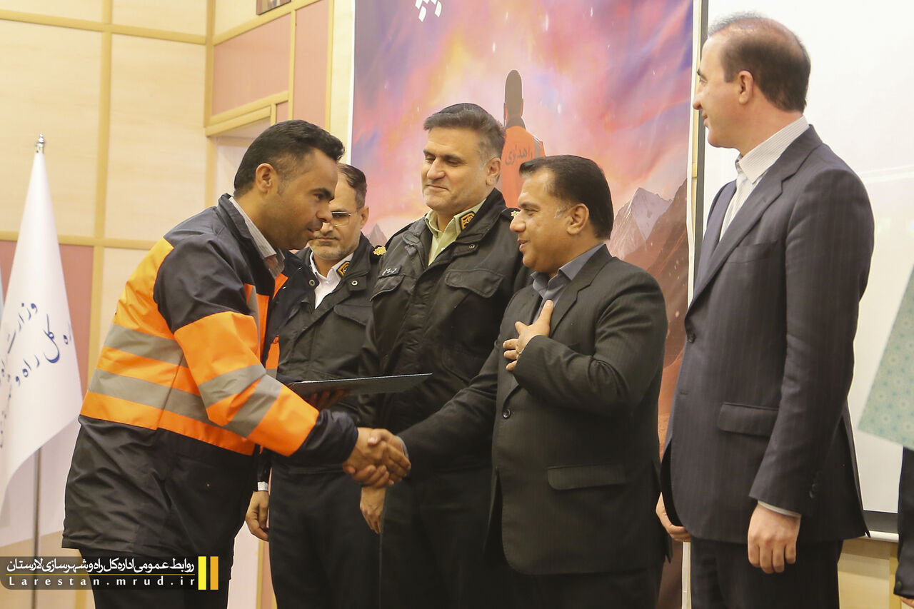 جلوه های از گردهمایی راهداران و آیین تجلیل از راهداران نمونه و عوامل میدانی و پشتیبانی حاضر در عملیات راهداری در جریان سیل روزهای پایانی پاییز ۱۴۰۴