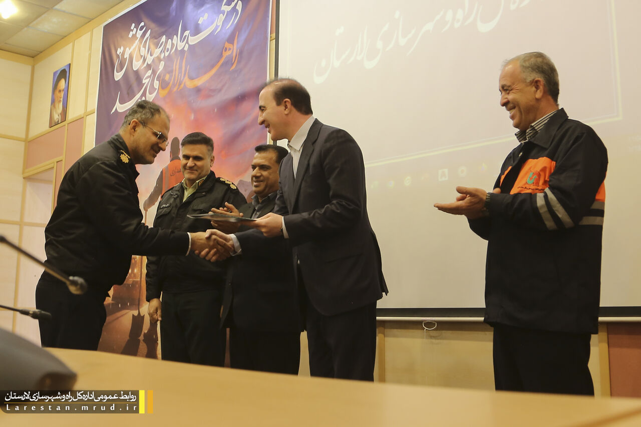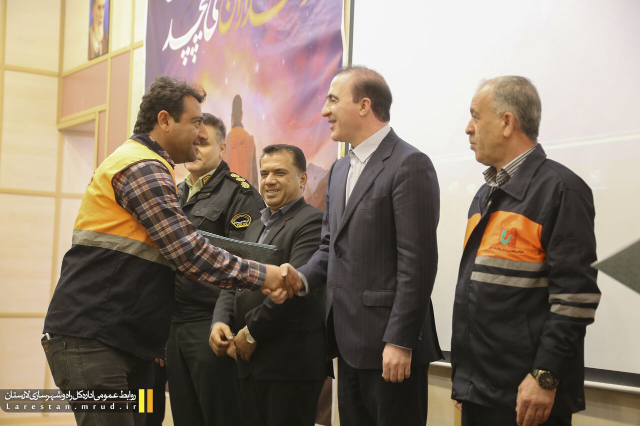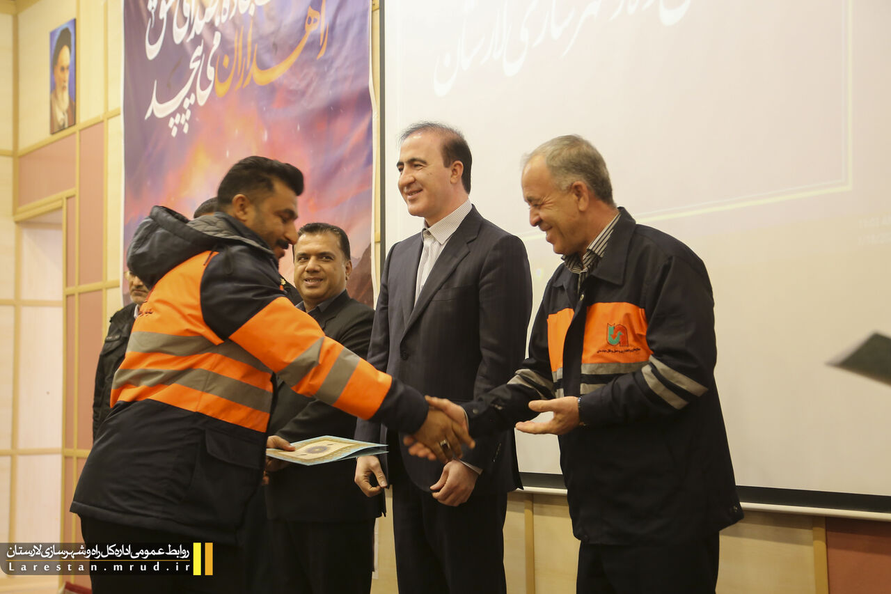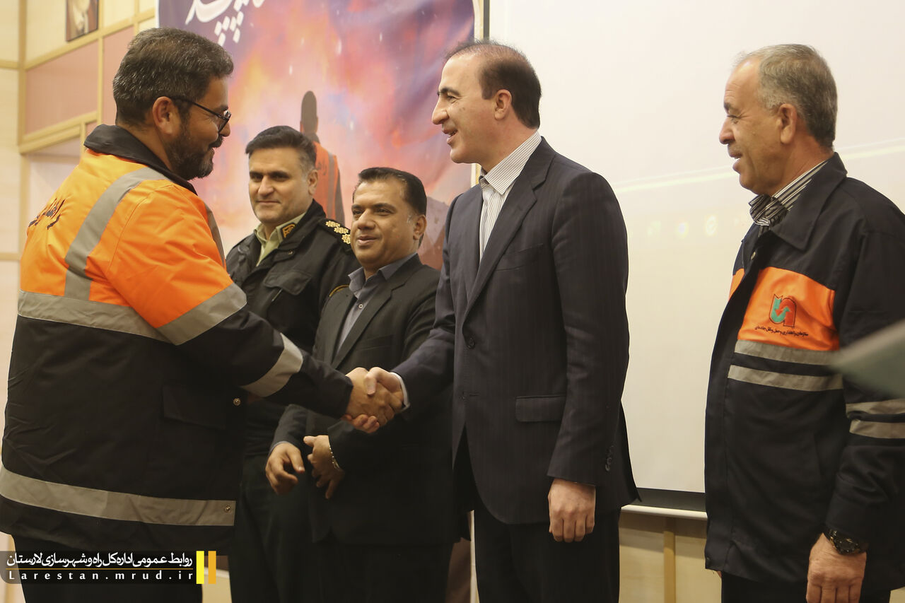 جلوه های از گردهمایی راهداران و آیین تجلیل از راهداران نمونه و عوامل میدانی و پشتیبانی حاضر در عملیات راهداری در جریان سیل روزهای پایانی پاییز ۱۴۰۴
