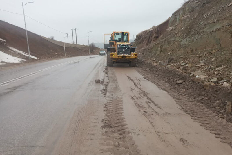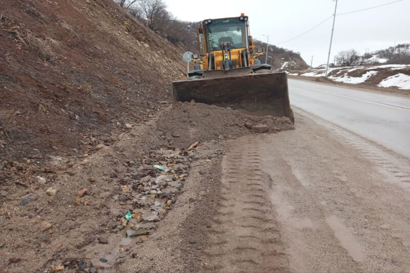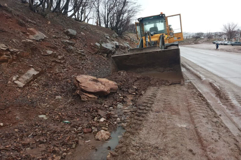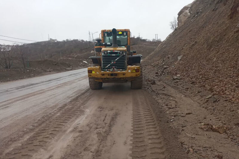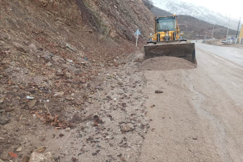 ببینید| عملیات ریزش برداری و پاکسازی شانه جاده محور روانسر - پاوه